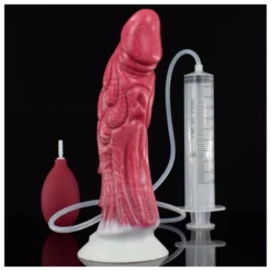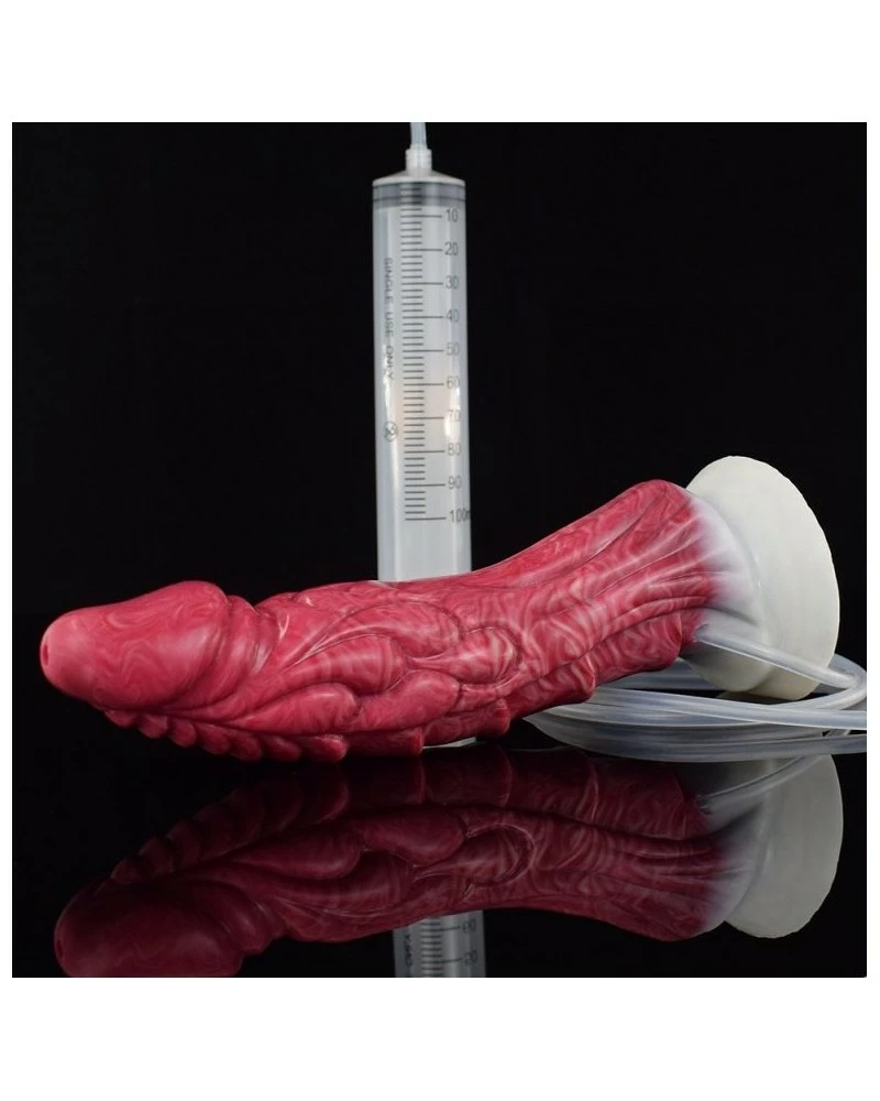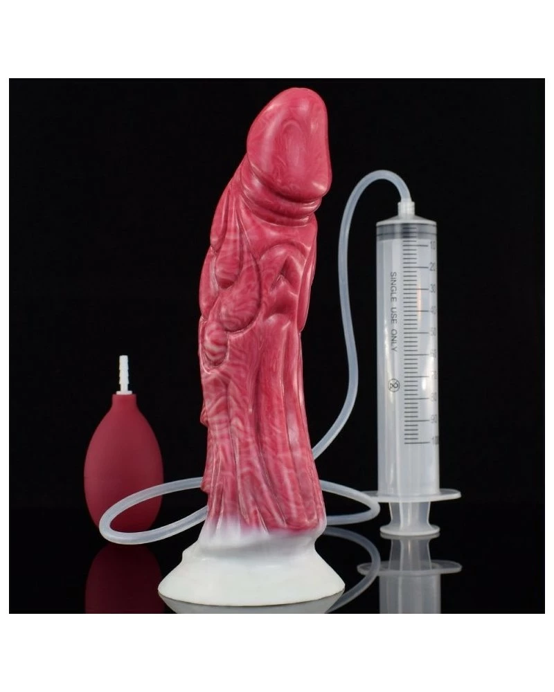 Ce gode éjaculateur Balstak est un sextoy conçu avec une forme monster. Il a une longueur insérable de 21cm et une largeur allant de 4 à 5cm.Avec une surface fortement texturée pour des sensations intenses. La seringue (100ml) permet de projeter un liquide imitation sperme (non fourni). Il est fabriqué en silicone souple