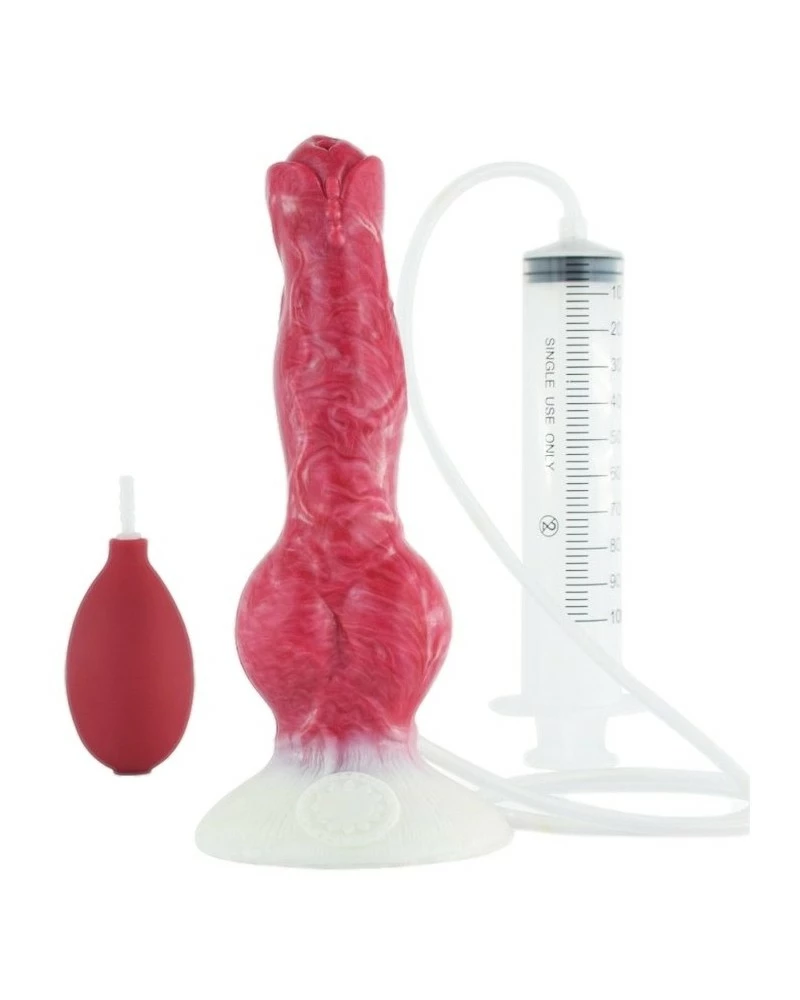 Ce gode Ă©jaculateur Fuxar est un sextoy conçu avec une forme de sexe animalier. Il assure des sensations excitantes grâce Ă cette forme, aux dimensions et au système de projection d’eau ou autre liquide qui imite une Ă©jaculation. La longueur insĂ©rable est de 18cm. La largeur va de 3.5 Ă 6cm. Avec la seringue de 100ml et la poire pour une utilisation facile. Il est fabriquĂ© en silicone souple
