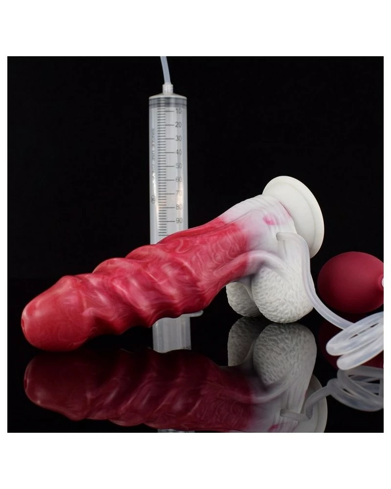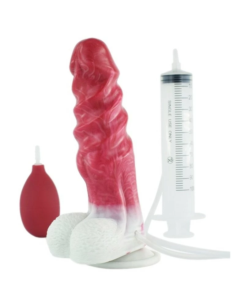 Le gode Ă©jaculateur Snur est un sextoy composĂ© d’une forme originale avec une surface en torsade.Il a une longueur insĂ©rable de 15cm et une largeur maximale de 4.6cm.La seringue (100ml) et la poire permettent de projeter un liquide imitant le sperme (non fourni) et de simuler une Ă©jaculation. En silicone souple