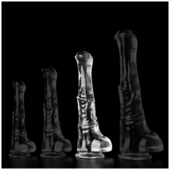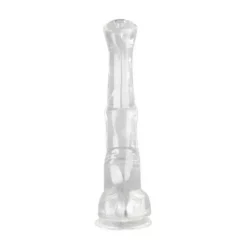 Le gode Hestur est un sextoy avec une forme de sexe de cheval et des dimensions importantes.La longueur insérable est de 28cm. Sa largeur est de 6cm (6.5cm maximum tout en bas). Avec une structure souple et une base ventouse. En matière TPE