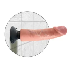Le gode vibrant de la marque King Cock est ici dans sa version 9″. Il possède une longueur insĂ©rable de 21cm.La largeur est de 5cm.La forme est droite avec un gland circoncis, lĂ©gèrement rosĂ©. Le relief est veinĂ© avec un aspect rĂ©aliste. Le gode est accompagnĂ© de la ventouse qui permet de rendre l’usage plus facile