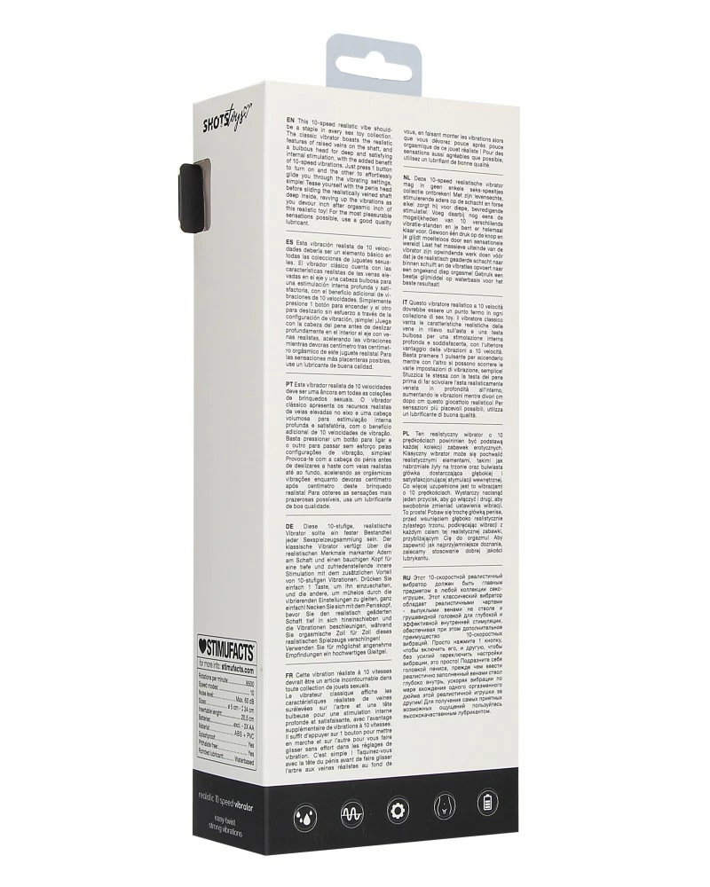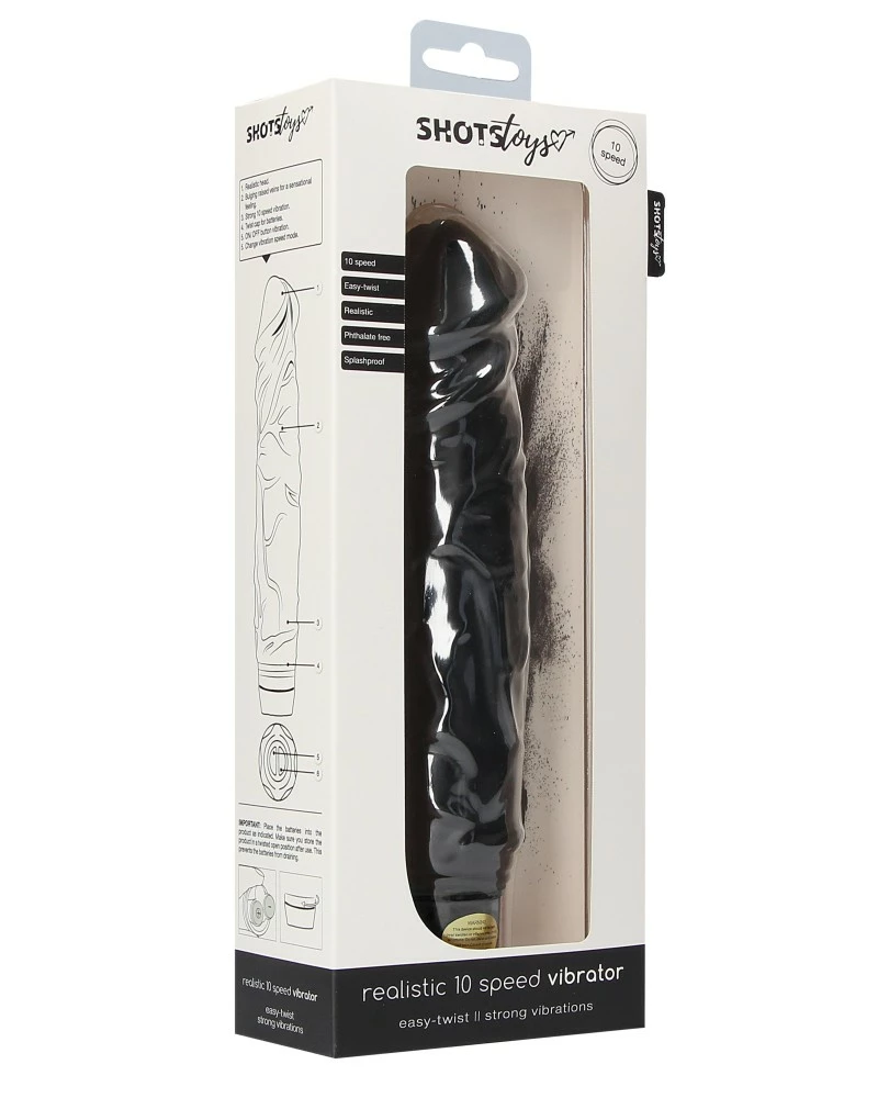Le gode vibrant Realistic Up est un sextoy noir de la marque ShotsToys conçu avec une forme réaliste.Il possède un gland sans prépuce et une surface fortement veinée pour des sensations très excitantes.La longueur insérable est de 20cm. La largeur est de 4.6cm. Il dispose de 10 modes de vibrations. Fabriqué en PVC