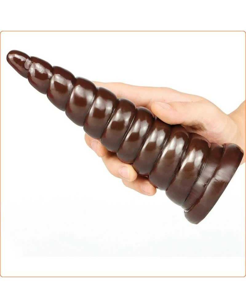 Ce plug marron est un sextoy original conçu avec une forme en pointe et torsadĂ©e.Il est composĂ© d’une longueur insĂ©rable de 20cm et d’une largeur progressive atteignant 6cm. Avec une ventouse. FabriquĂ© en PVC