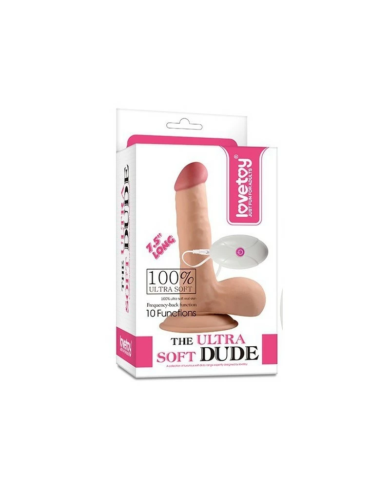 Ce gode vibrant est un sextoy de la gamme Ultra Soft proposĂ© par la marque Lovetoy.Il est composĂ© d’une longueur insĂ©rable de 14cm et d’une largeur de 4cm. La surface est lĂ©gèrement veinĂ©e pour apporter des sensations agrĂ©ables. Le gland est cicroncis et rosĂ©.La ventouse permet une utilisation plus facile. Le gode possède 10 modes de vibrations.Il est fabriquĂ© en TPE souple